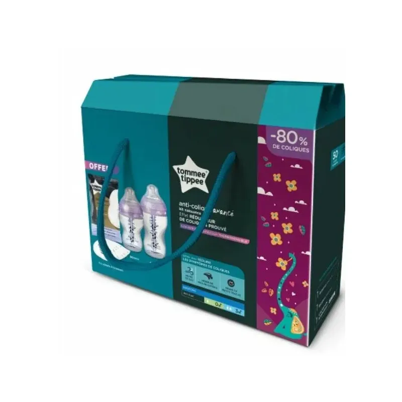 Le Kit Naissance Advanced Anti-Colique Rose Panda de Tommee Tippee est la solution idéale pour les nouveau-nés qui souffrent de coliques, de reflux, de gaz ou d'agitation pendant l'allaitement au biberon. Ce kit complet est centré sur les biberons Advanced Anti-Colique qui intègrent un système de ventilation anti-colique en trois parties (tube, valve étoilée et tétine) dont l'efficacité est prouvée pour réduire jusqu'à 80 % les symptômes de coliques. La couleur rose et le design thématique (Panda ou autres motifs doux) offrent une touche esthétique. L'ensemble fournit tout le nécessaire pour un démarrage serein de l'alimentation au biberon, y compris des tétines évolutives.