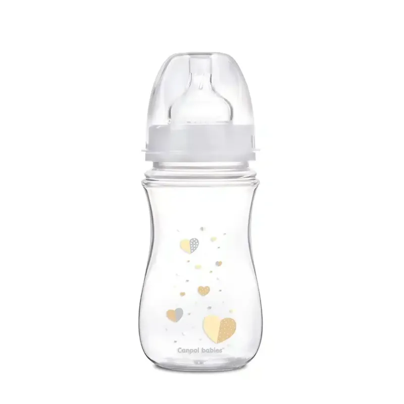 Ce biberon anticolique Canpol Babies, d'une capacité de 240 ml, est spécialement conçu pour les bébés de 3 mois et plus, visant à rendre l'alimentation plus confortable et à réduire les désagréments digestifs. Fabriqué en polypropylène (PP) de haute qualité, un matériau léger, durable et naturellement sans Bisphénol A (BPA Free), il assure une sécurité maximale pour votre enfant. Son design classique est ergonomique pour une prise en main facile. Le biberon est équipé d'une tétine en silicone anticolique dont le débit est adapté aux bébés de 3 mois et plus. Cette tétine est conçue pour minimiser l'ingestion d'air pendant la tétée, ce qui aide à réduire les gaz, les régurgitations et les coliques. La graduation claire sur le biberon permet de mesurer précisément les quantités de lait. Ce biberon est une solution fiable pour une alimentation sereine et le bien-être digestif de votre bébé.