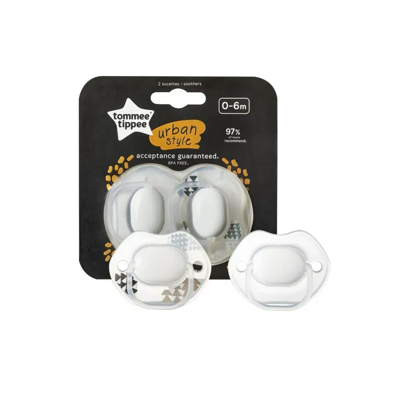 Le lot de 2 Sucettes Urban Style de Tommee Tippee, spécialement conçu pour la tranche d'âge 0 à 6 mois, fait partie d'une collection qui allie style moderne et fonctionnalité orthodontique. Ces sucettes sont créées pour satisfaire le besoin instinctif de succion du nouveau-né, aidant à le calmer et à l'apaiser. Le design Urban Style se caractérise par des motifs contemporains et des couleurs tendance. La sucette est dotée d'une tétine symétrique et réversible qui facilite la prise en bouche par le bébé. Le bouclier est conçu pour être confortable sur la peau délicate du nourrisson, favorisant une bonne circulation de l'air pour prévenir les irritations.