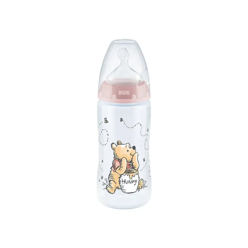Le biberon est équipé d'une tétine NUK First Choice+ en silicone, reconnue pour sa forme orthodontique qui soutient le développement sain de la mâchoire et des dents de bébé. Sa forme s'inspire du sein maternel pour une sensation naturelle et une succion efficace. La tétine intègre également le système anti-colique NUK Anti-Colic Air System, qui aide à réduire l'ingestion d'air et, par conséquent, les coliques et l'inconfort digestif. Le col large du biberon facilite le remplissage et le nettoyage, et son design ergonomique assure une bonne prise en main.