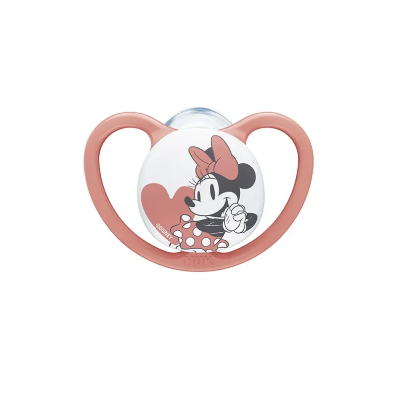 La caractéristique la plus distinctive de la sucette NUK Space est son bouclier extra-large avec de très grandes ouvertures. Cette conception unique maximise la circulation de l'air autour de la peau délicate du visage de votre bébé, ce qui est crucial pour prévenir l'accumulation d'humidité. Cela aide à éviter les irritations cutanées, les rougeurs et les marques souvent causées par une succion prolongée. Le design du bouclier est également optimisé pour minimiser le contact avec la peau, offrant un confort accru. Le motif Mickey Mouse ajoute une touche ludique et joyeuse que les enfants et les parents apprécieront.