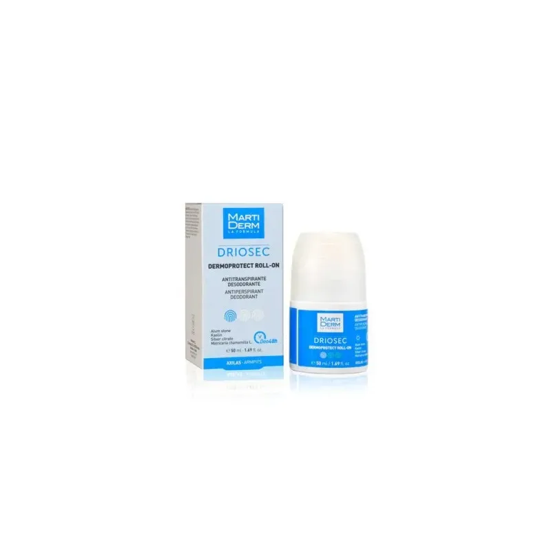 Roll-On Anti-transpirant MARTIDERM Driosec Dermo Protect 50ml, régule la transpiration modérée et contrôle les odeurs tout en protégeant et apaisant les peaux sensibles des aisselles.