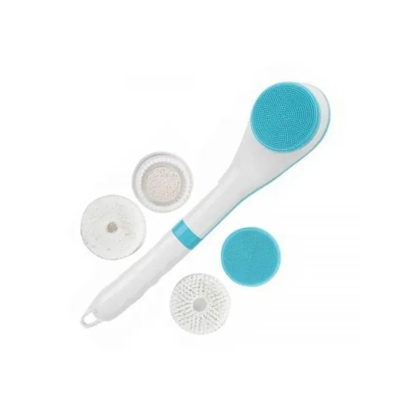 Têtes Interchangeables Multi-Fonctions : Le coffret comprend une tête de massage en silicone, une brosse fine, une brosse douce, une tête pouf de bain et une brosse de microdermabrasion.