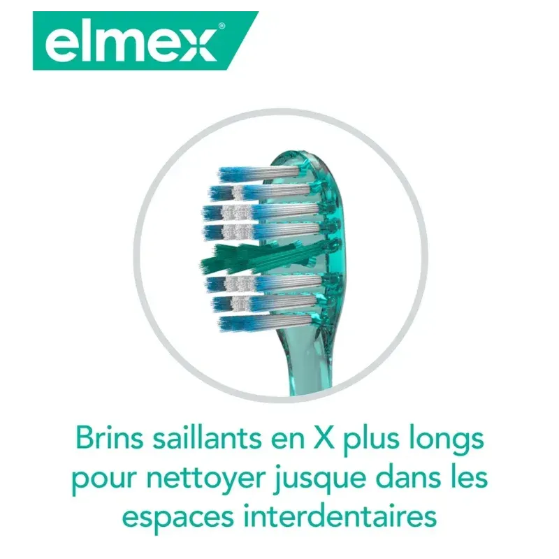 La ELMEX SENSITIVE BROSSE À DENTS EXTRA SOUPLE est spécialement développée pour répondre aux besoins des personnes souffrant de sensibilité dentaire et/ou ayant des collets dentaires dénudés (où la gencive s'est rétractée). Le brossage des dents sensibles nécessite un soin particulier pour nettoyer efficacement sans causer d'abrasion ou de douleur. Cette brosse à dents manuelle se distingue par ses brins coniques extra-souples (ou "en forme de nuage" selon les versions) qui assurent un nettoyage en douceur des dents et des gencives. Elle est conçue pour maximiser la surface de contact tout en répartissant la pression, minimisant ainsi l'agression sur les zones sensibles et les collets dénudés. Elle comporte souvent des brins en X plus longs permettant d'atteindre et de nettoyer les espaces interdentaires et le long du sillon gingival, des zones souvent difficiles d'accès avec une brosse classique. Son manche ergonomique et antidérapant assure une prise en main optimale pour un contrôle précis du brossage.