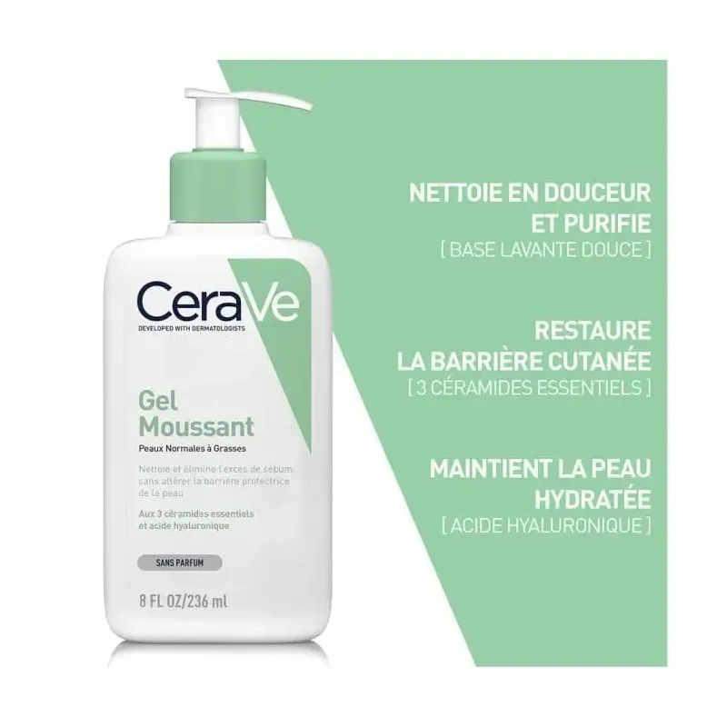 Ce Gel Moussant est un nettoyant quotidien essentiel pour le visage et le corps, spécifiquement formulé pour les peaux normales à grasses. Il nettoie efficacement, éliminant l'excès de sébum, la saleté et les résidus de maquillage, sans perturber la barrière protectrice naturelle de la peau. Sa formule unique, développée avec des dermatologues, est enrichie en trois céramides essentiels et en niacinamide pour apaiser. Sa texture gel se transforme en une mousse légère au contact de l'eau, laissant la peau fraîche, propre et confortable. Le format généreux de 473ml est idéal pour un usage quotidien et prolongé sur le visage et le corps.