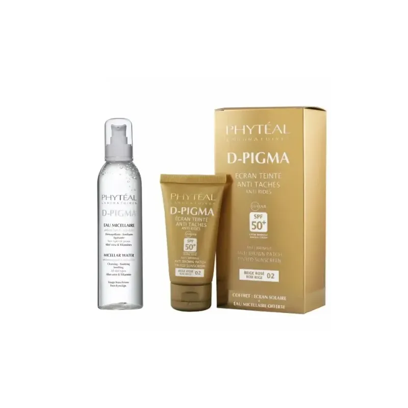 Ce duo comprend le PHYTEAL D-PIGMA ÉCRAN TEINTÉ BEIGE ROSÉ SPF50+ 50ML, une protection solaire quotidienne qui combine une très haute défense contre les rayons UVA, UVB et la lumière bleue avec un fini teinté unifiant. Sa formule est 100% minérale, ce qui la rend particulièrement adaptée aux peaux sensibles et même aux femmes enceintes. Elle agit comme un soin multi-actions : protection solaire, correction des taches, hydratation, et unificateur de teint.