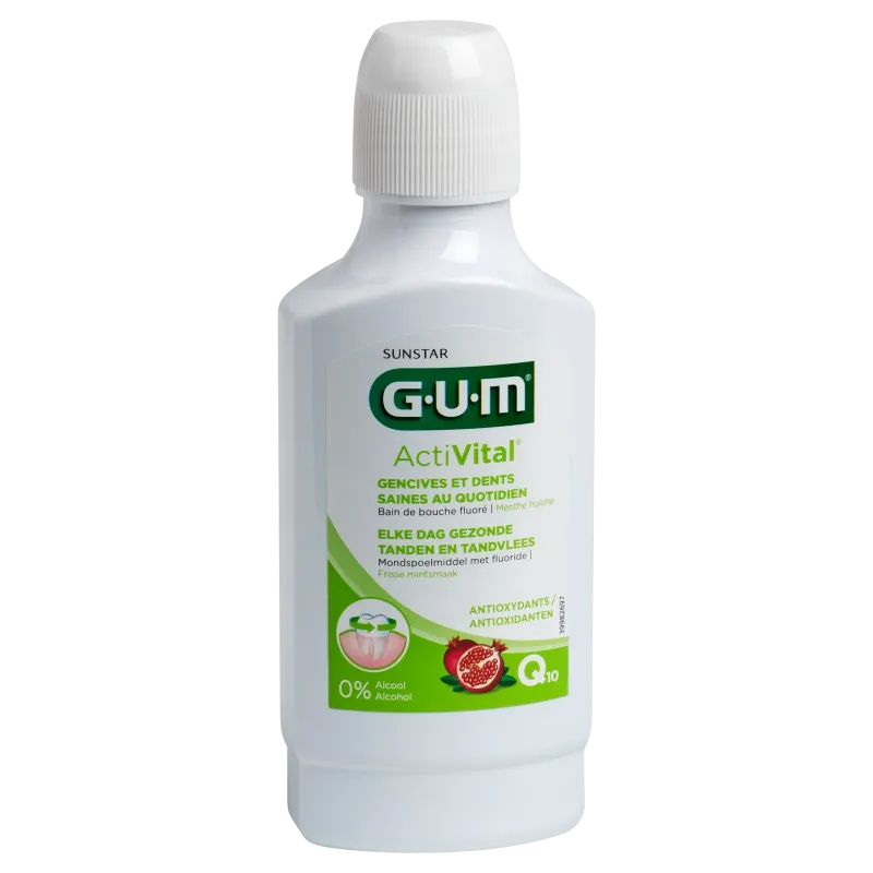 Le Bain de Bouche GUM Activital 300ml est une solution de soin bucco-dentaire quotidienne formulée pour la prévention et l'action complète sur les problèmes gingivaux. Sa formule multi-actions, sans alcool, a été conçue pour aider à maintenir des gencives saines et des dents fortes en ciblant l'élimination de la plaque dentaire et la protection de la bouche contre les agressions quotidiennes. C'est le complément parfait du brossage pour une hygiène bucco-dentaire optimale.