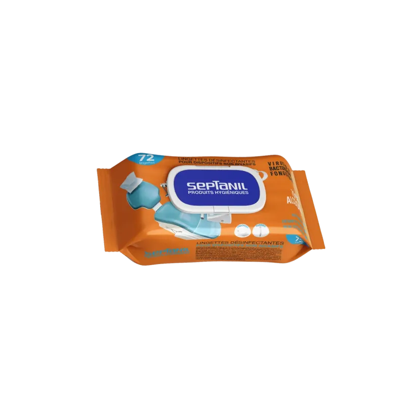 Les SEPTANIL LINGETTES DÉSINFECTANTES MÉDECIN 72 PIÈCES sont des lingettes hydroalcooliques professionnelles et prêtes à l'emploi, spécialement formulées pour la désinfection rapide des dispositifs médicaux non invasifs et des surfaces dures et non poreuses en milieu médical et professionnel. Chaque lingette est imprégnée d'une solution contenant généralement 70% d'alcool, assurant une efficacité optimale contre les virus, bactéries (Bactéricide EN 1276, EN 13727) et champignons/levures (Levuricide EN 13624). Ces lingettes sont reconnues pour leur action rapide et leur capacité à éliminer 99,9% des germes. Elles sont non oxydantes, préservant ainsi l'intégrité des équipements sensibles, et peuvent être légèrement parfumées pour laisser une odeur de fraîcheur. Le format de 72 pièces est pratique pour un usage quotidien intensif.