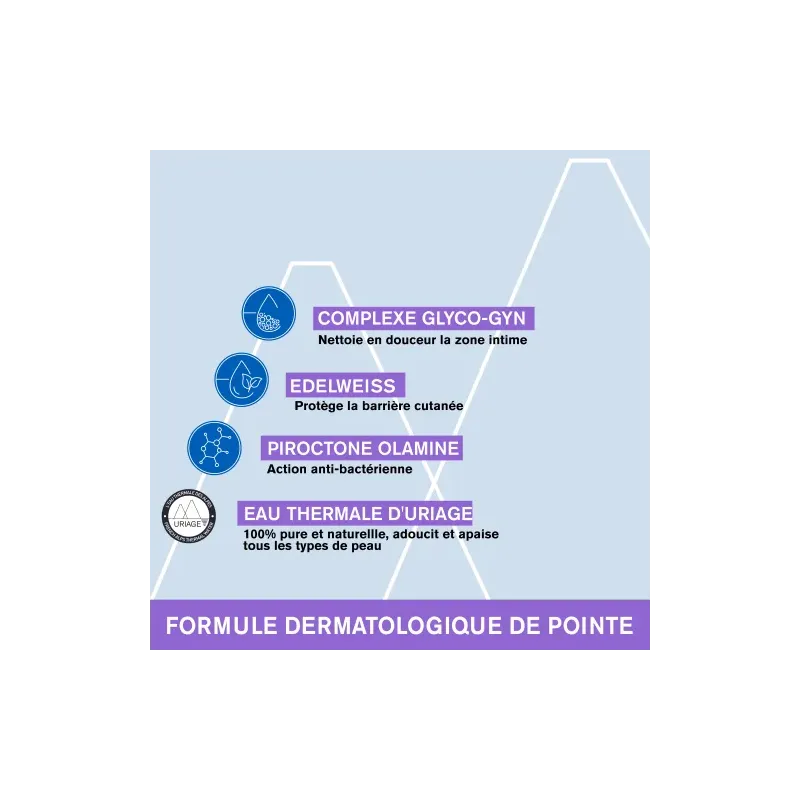 Un soin nettoyant intime sans savon pour les muqueuses irritées et sensibles. Il apaise rapidement les démangeaisons et irritations, aide à rééquilibrer la flore intime (pH 8, Piroctone Olamine), et offre une haute tolérance grâce à l'Eau Thermale d'Uriage.