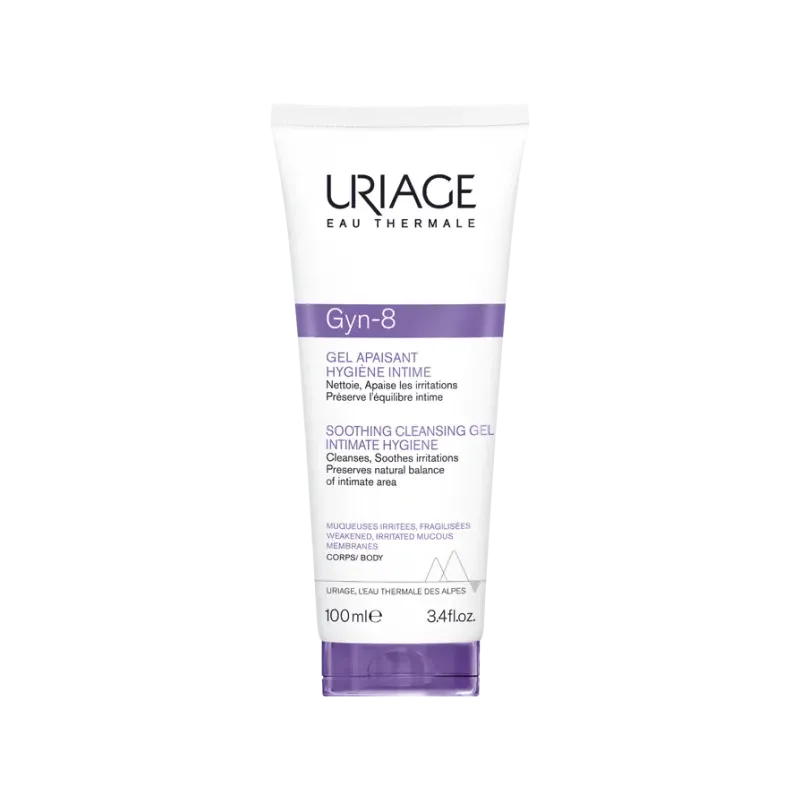 URIAGE GYN 8 Toilette Intime Gel Apaisant 100ml est un soin d'hygiène intime spécifiquement formulé pour les muqueuses irritées et sensibles. Il est conçu pour apporter un soulagement rapide et rétablir l'équilibre de la flore intime en cas d'inconfort.