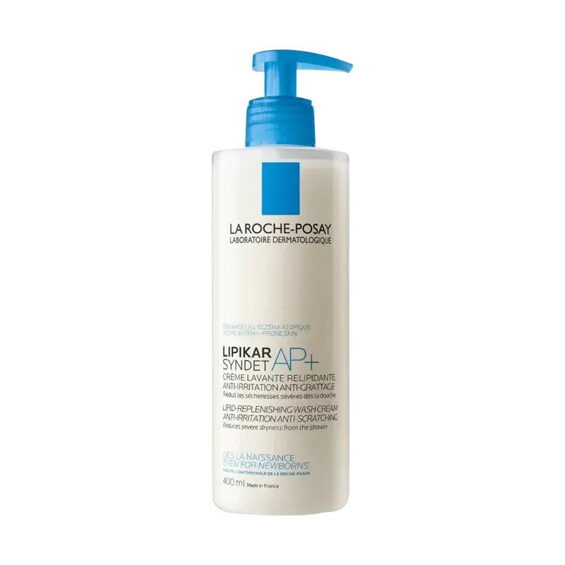 La Roche-Posay Lipikar Syndet AP+ Crème Lavante (400 ml) est un nettoyant corporel ultra-doux et relipidant, spécifiquement formulé pour l'hygiène quotidienne des peaux très sèches, irritées et sujettes aux démangeaisons, y compris celles à tendance atopique (eczéma). Ce syndet (nettoyant sans savon) est conçu pour apaiser la peau dès la douche, restaurer sa barrière protectrice et limiter les pics de sécheresse sévère.