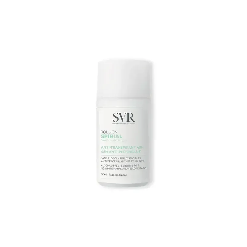 Le déodorant roll-on SPIRIAL Anti-Transpirant 48h de SVR est un soin intensif conçu pour réguler la transpiration normale à excessive, tout en neutralisant les mauvaises odeurs. Sa formule, dotée d'un complexe anti-transpirant puissant, agit efficacement pendant 48 heures pour offrir une sensation de fraîcheur et de confort durable. Il est enrichi en agents hydratants et apaisants comme l'allantoïne pour prévenir les irritations, ce qui le rend idéal pour les peaux sensibles ou épilées. Sa texture fluide et non collante sèche rapidement et ne laisse pas de traces blanches ni jaunes sur les vêtements. Il offre une protection fiable contre la transpiration et les odeurs, permettant de rester frais et confiant tout au long de la journée, sans bloquer le processus naturel de transpiration de manière excessive.