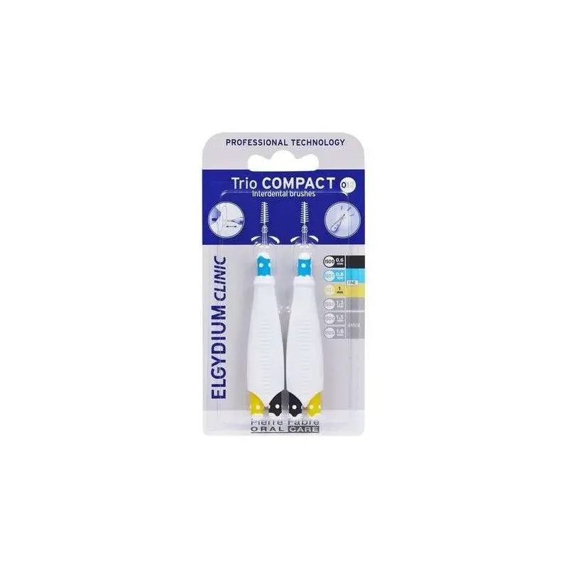 ELGYDIUM CLINIC BROSSETTES INTERDENTAIRES TRIO COMPACT est un kit d'hygiène interdentaire pratique et essentiel, conçu pour le nettoyage quotidien et efficace des espaces entre les dents. Ce kit propose généralement trois brossettes de tailles différentes (ou de la même taille selon le conditionnement exact), toutes dotées de la technologie Elgydium Clinic, offrant à la fois performance et confort. Le format "Trio Compact" est idéal pour les voyages ou pour les personnes ayant des espaces interdentaires de tailles variables, car il permet une adaptation précise à chaque zone de la bouche. Le nettoyage interdentaire est crucial pour éliminer la plaque et les débris inaccessibles à la brosse à dents, prévenant ainsi les caries et les problèmes de gencives.