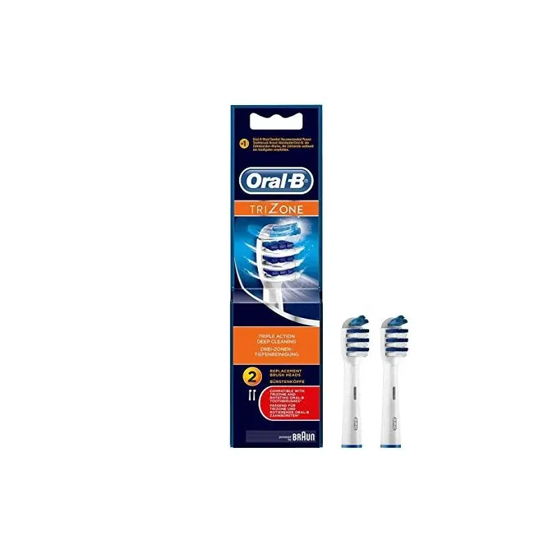 Lot de deux brossettes de rechange Oral-B TriZone EB30, offrant un nettoyage électrique complet avec une triple zone d'action qui simule la forme et l'efficacité de brossage d'une brosse manuelle.