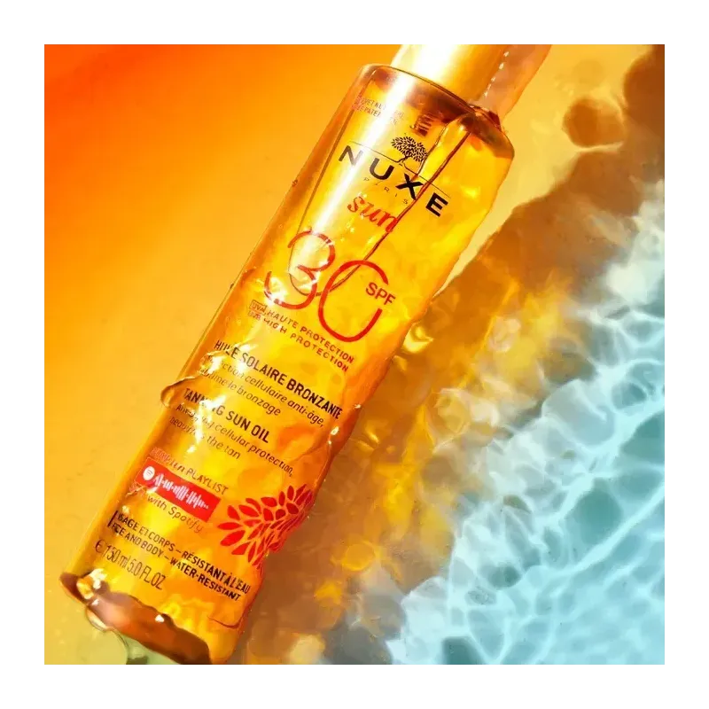 NUXE SUN HUILE BRONZANTE VISAGE ET CORPS SPF30 est une huile solaire qui offre une protection anti-âge et une haute protection contre les UVA/UVB, tout en sublimant le bronzage. Sa formule non grasse et résistante à l'eau nourrit et protège la peau pour un bronzage lumineux et durable.