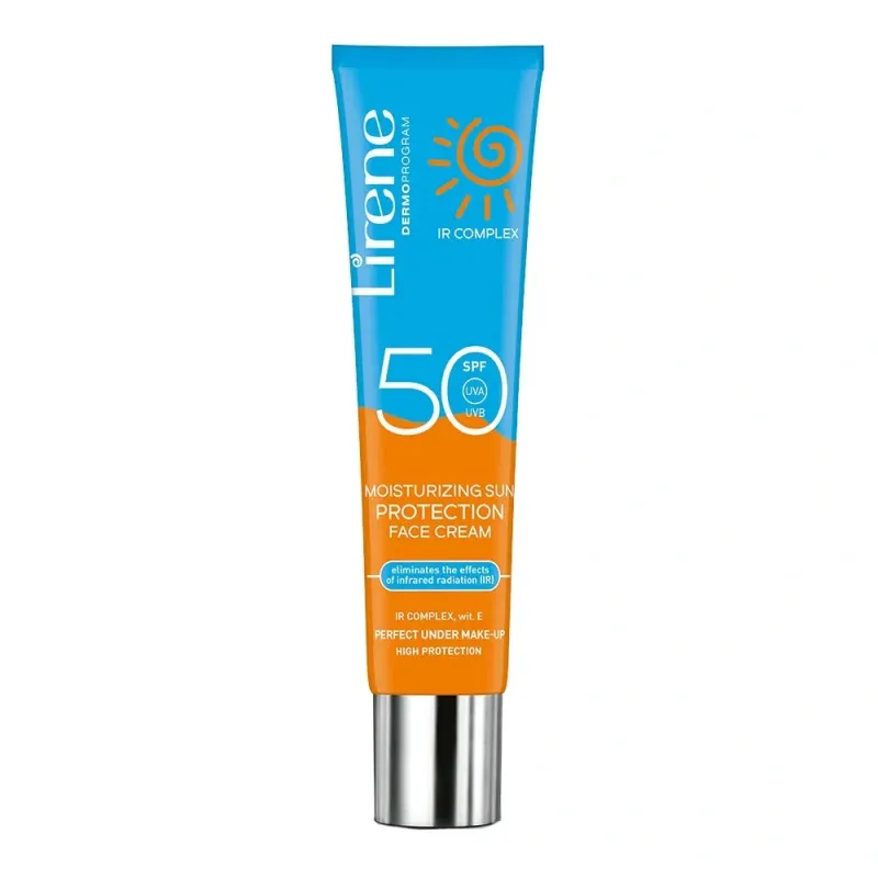 LIRENE Écran Solaire Invisible Visage SPF50+ à base de Vitamine E (40ML) est une lotion solaire à très haute protection, spécifiquement conçue pour les peaux sensibles. Cette émulsion imperméable repose sur le système de filtres photostables UVBlock pour une défense complète contre les effets néfastes des rayons UVA et UVB. Au-delà de la protection UV, elle intègre un complexe unique pour atténuer les effets du rayonnement Infrarouge (IR), souvent associé au photovieillissement. Sa formule est enrichie en actifs hydratants et anti-âge comme la Vitamine E, agissant comme un anti-radicalaire puissant pour prévenir les dommages cutanés. Sa texture est légère, non grasse et invisible, assurant une application confortable.