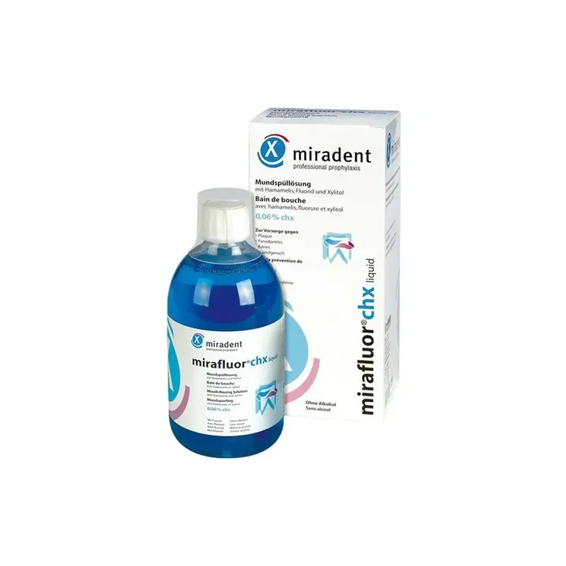 Le Miradent Bain de Bouche Mirafluor CHX 500ml est une solution bucco-dentaire spécialisée, conçue pour un soin intensif et une protection renforcée, particulièrement adaptée après des procédures dentaires ou en cas de problèmes gingivaux importants. Son grand format de 500ml est idéal pour des traitements prolongés sous recommandation professionnelle.