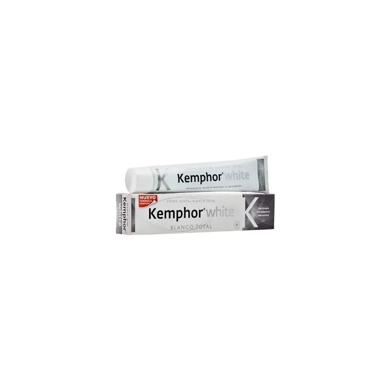 Le dentifrice Kemphor White est un soin d'hygiène bucco-dentaire quotidien spécifiquement formulé pour restaurer la blancheur naturelle des dents et maintenir leur éclat. Présenté dans un tube de 75 ml, il est conçu pour éliminer efficacement les taches de surface causées par le café, le thé, le tabac et d'autres aliments colorants, sans agresser l'émail. Sa formule combine des agents polissants doux avec des ingrédients protecteurs pour un nettoyage complet. Il offre une triple action : blanchissante, anti-plaque et anti-caries, laissant une sensation de propreté et une haleine fraîche.