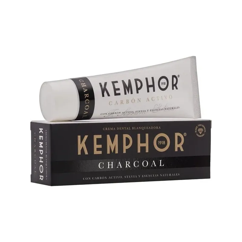 Le dentifrice Kemphor Charcoal 75 ml est un soin purifiant et blanchissant qui utilise le pouvoir du charbon actif pour éliminer les taches et détoxifier la bouche, tout en assurant une protection anti-caries grâce au fluor.