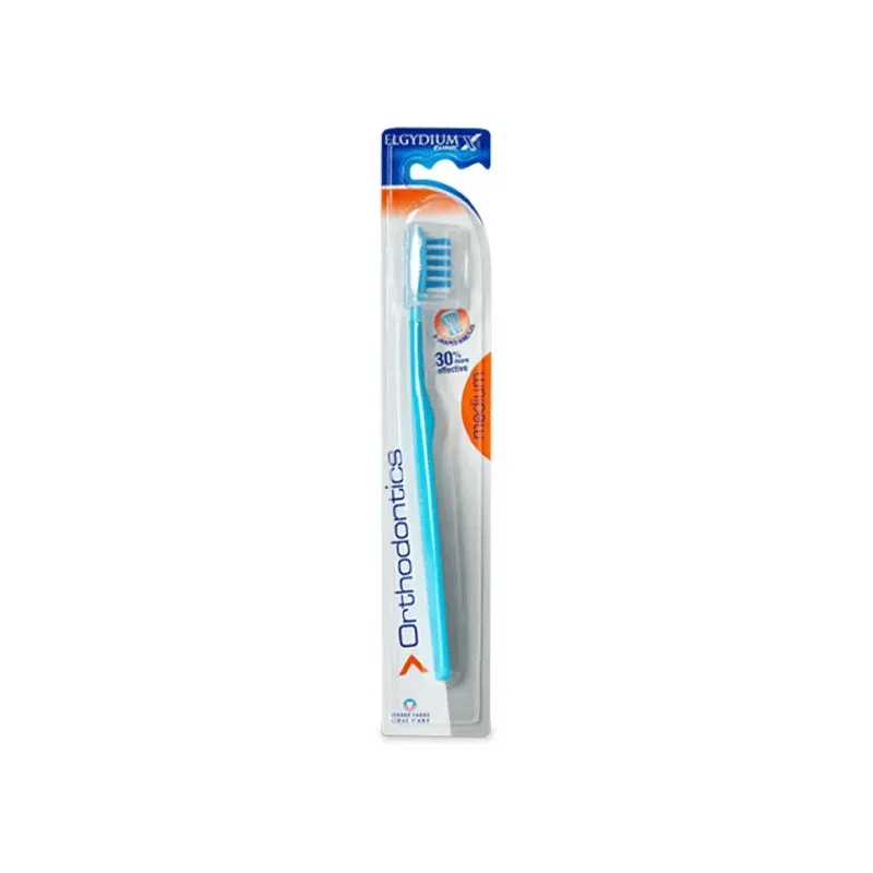 Brosse à Dents ELGYDIUM CLINIC Orthodontics Medium est spécialement conçue pour répondre aux défis d'hygiène bucco-dentaire liés au port d'un appareil orthodontique (bagues, arcs). Le brossage devient difficile avec les bagues, rendant le nettoyage de la plaque et la prévention des caries plus complexes. Cette brosse se distingue par sa coupe spéciale des brins en forme de "V" ou de "gouttière" : une rangée de brins est plus courte au centre, permettant de nettoyer simultanément la surface des bagues et celle des dents et gencives. La dureté "Medium" offre un nettoyage efficace pour déloger les résidus alimentaires et la plaque autour des appareils.