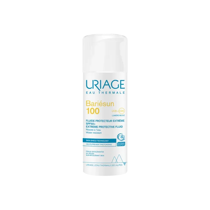 URIAGE Bariésun 100 Fluide Protecteur Extrême SPF50+ 50ml est une protection solaire très haute et extrême, conçue pour les peaux les plus sensibles et intolérantes au soleil, ainsi que pour les situations d'exposition intense.