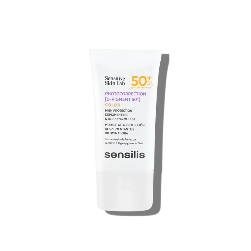 Le SENSILIS PHOTOCORRECTION [D-PIGMENT 50+] Mousse Teintée est un écran solaire de très haute protection, spécialement conçu pour les peaux sensibles sujettes à l'hyperpigmentation. Ce soin innovant à la texture mousse légère offre une triple action : il protège efficacement contre les rayons UVA, UVB, la lumière bleue et les infrarouges, prévient et réduit l'apparence des taches brunes, et unifie le teint pour un fini mat et lumineux. Sa formule contient des actifs dépigmentants qui agissent sur la production de mélanine, ce qui en fait le soin idéal pour protéger la peau tout en agissant sur les taches existantes.