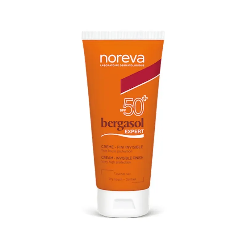 La NOREVA BERGASOL EXPERT CRÈME FINI INVISIBLE SPF 50+ 50ML est une protection solaire visage de très haute performance, conçue pour protéger efficacement la peau du soleil tout en assurant un fini totalement transparent et non gras. Formulée avec le complexe innovant Sensitiv Protect et l'Elixir B17, elle ne se contente pas de filtrer les UV (UVA, UVB), mais agit aussi en profondeur pour stimuler les défenses naturelles de la peau et prévenir le photo-vieillissement. Sa texture veloutée s'absorbe rapidement, ne laisse aucune trace blanche et offre un confort immédiat, même aux peaux les plus sensibles. Elle est idéale pour le visage et les zones délicates, et résiste à l'eau.