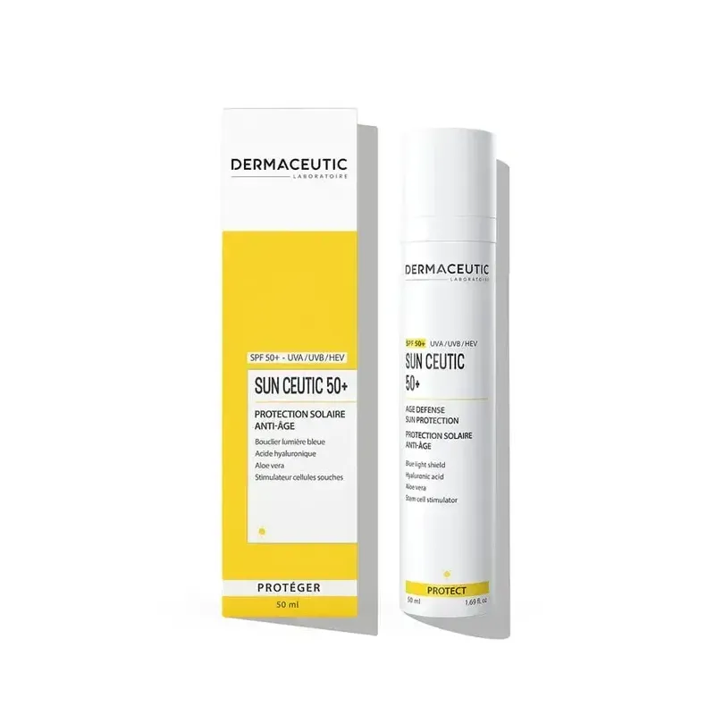 DERMACEUTIC SUN CEUTIC SPF 50+ est une protection solaire très haute performance, conçue pour prévenir le vieillissement cutané causé par le soleil et protéger la peau des dommages cellulaires. Sa formule riche en actifs antioxydants et hydratants offre une action complète pour une peau protégée et saine.