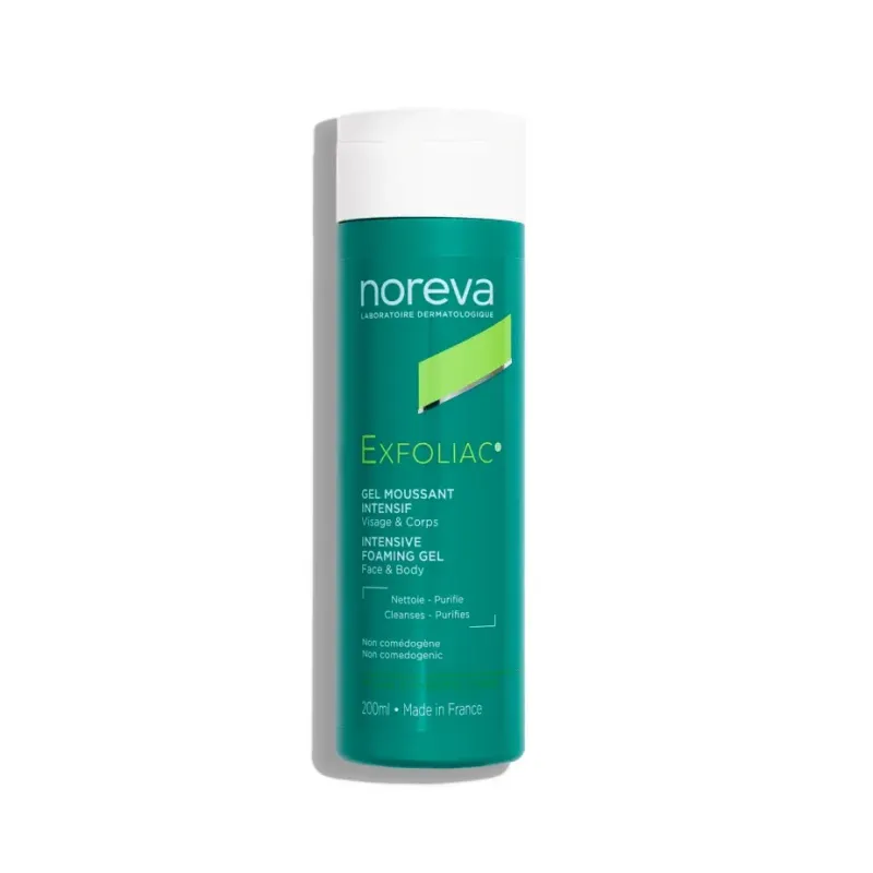 Le NOREVA EXFOLIAC GEL MOUSSANT INTENSIF 200ML est le produit d'hygiène de référence pour les peaux grasses, jeunes à problèmes et à tendance acnéique. Spécialement formulé à base d'AHA (Alpha-HydroxyAcides) et de Lactate de Zinc, ce gel moussant sans savon assure un nettoyage en profondeur. Il purifie l'épiderme en douceur, élimine les impuretés et l'excès de sébum tout en réduisant la prolifération bactérienne. Sa formule respecte l'équilibre cutané et prévient l'effet desséchant souvent associé aux nettoyants pour peaux grasses. Il favorise l'élimination des imperfections et laisse la peau nette, saine, avec des pores visiblement resserrés.