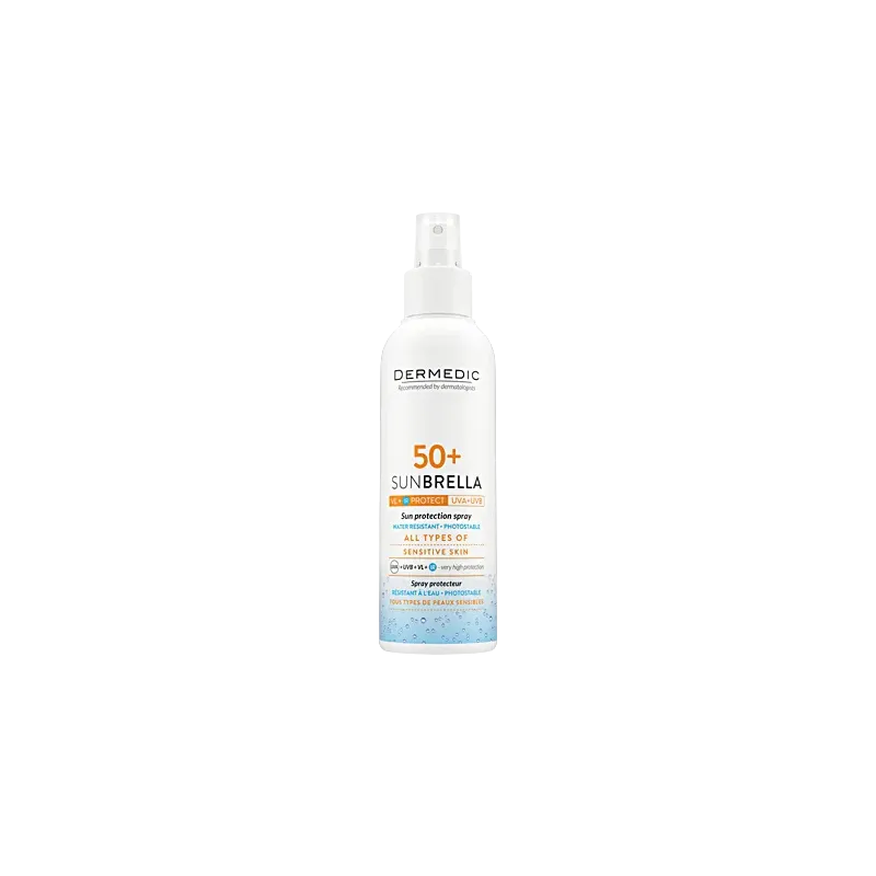 L'exposition solaire sans protection adéquate est la cause principale des coups de soleil, du vieillissement cutané prématuré (rides, taches pigmentaires) et des risques de cancers de la peau. Le DERMEDIC SUNBRELLA SPRAY ADULTE SPF50+ est formulé avec des technologies de pointe pour garantir une protection maximale et un confort d'utilisation :