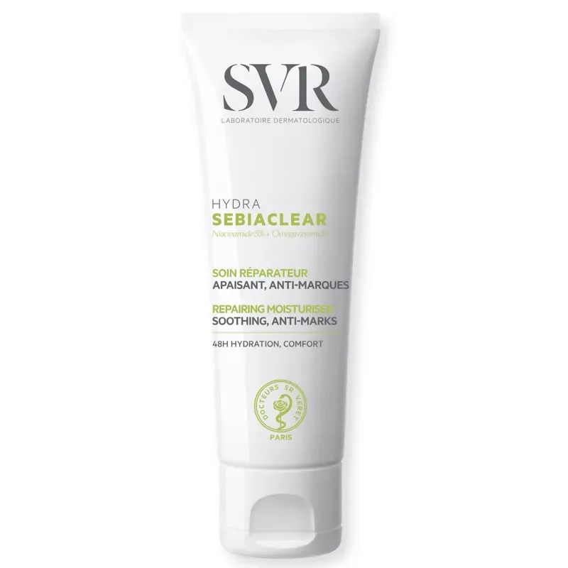 Le SVR Sebiaclear Hydra Soin Apaisant Anti-Marques 40ml est un soin hydratant réparateur conçu pour les peaux à tendance acnéique, particulièrement celles fragilisées par des traitements desséchants.