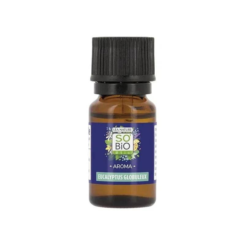 Pour la référence SO BIO HUILE ESSENTIELLE EUCALYPTUS BIO 10 ML, il est très probable que le produit soit soit de l'Eucalyptus Globuleux (Eucalyptus globulus), soit de l'Eucalyptus Radié (Eucalyptus radiata). L'Eucalyptus Radié étant généralement considéré comme plus doux et adapté aux peaux sensibles, les informations ci-dessous se basent sur les propriétés générales de l'Eucalyptus, en se concentrant sur les indications de l'Eucalyptus Radié, souvent utilisé par SO'BiO étic pour ses produits Bio et Aroma.