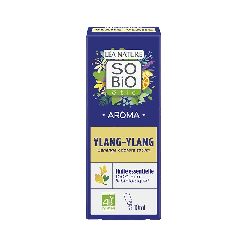 L'Huile Essentielle d'Ylang Ylang Biologique de SO'BiO étic, surnommée la "fleur des fleurs", est extraite des fleurs de Cananga odorata. Elle se distingue par son parfum floral, exotique et puissant, réputé pour ses vertus sur le plan nerveux et cutané. C'est une huile essentielle harmonisante et apaisante, traditionnellement utilisée pour réduire le stress, l'anxiété et favoriser la détente. En cosmétique, elle est prisée pour ses propriétés toniques capillaires (force et brillance) et séborégulatrices (équilibre des peaux et cuirs chevelus gras). Elle est également reconnue pour son effet aphrodisiaque et euphorisant.