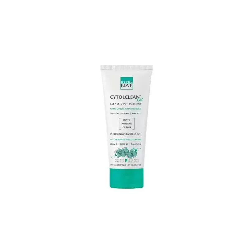 Le Gel Nettoyant Purifiant CYTOL CLEAN est un soin dermatologique quotidien, spécialement formulé pour les peaux grasses à tendance acnéique. Sa formule purifiante nettoie la peau en profondeur, éliminant l'excès de sébum, les impuretés et les résidus de maquillage, sans la dessécher. Grâce à ses actifs séborégulateurs et assainissants, il aide à réduire la brillance, à désobstruer les pores et à prévenir l'apparition des imperfections. Il laisse la peau nette, fraîche et matifiée, constituant une étape essentielle pour une routine de soin des peaux à problèmes.