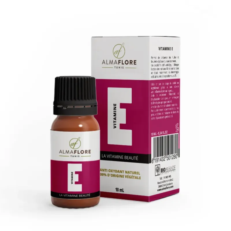 ALMAFLORE Vitamine E 100% d'Origine Végétale 10 ml n'est pas une huile végétale de soin, mais un puissant antioxydant (mélange de tocophérols) concentré dans une petite bouteille. Il s'agit d'une huile très visqueuse, d'une couleur ambrée claire, dont le rôle principal est double : protéger les huiles végétales et les préparations cosmétiques maison de l'oxydation (rancissement) et apporter de puissantes vertus anti-âge à la peau. La Vitamine E est un piège à radicaux libres très efficace, aidant à prévenir les dommages cutanés liés aux UV et à la pollution. Ce produit est essentiel en cosmétique maison pour prolonger la durée de vie des huiles sensibles (comme la Bourrache ou l'Onagre) et des baumes.