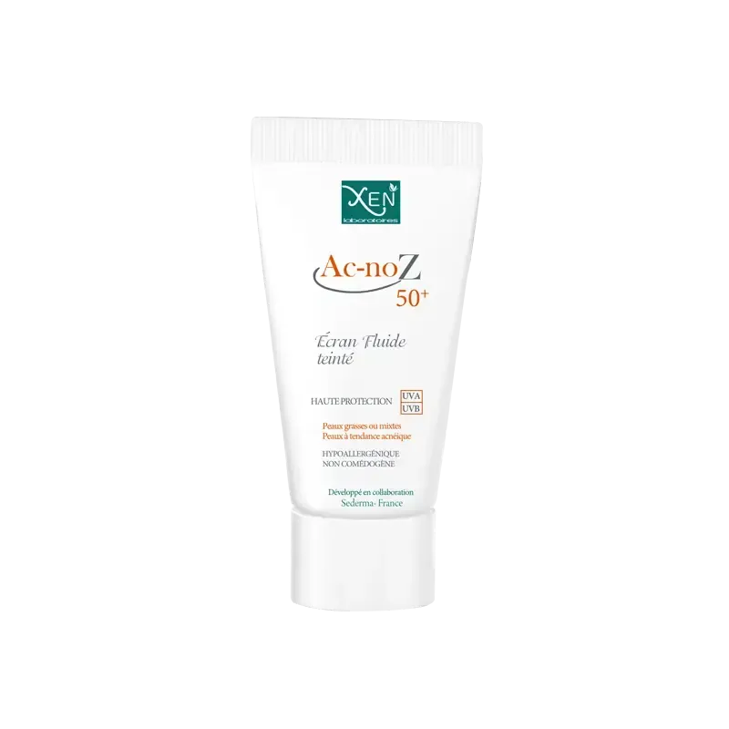 XEN ACNOZ ÉCRAN FLUIDE TEINTÉ SPF 50+ est un soin solaire teinté spécialement conçu pour les peaux grasses et à tendance acnéique. Ce produit unique combine une très haute protection solaire (SPF 50+) avec des actifs qui ciblent les imperfections et unifient le teint. Sa texture fluide et non grasse, enrichie en pigments minéraux, s'adapte à la carnation pour masquer les imperfections et les rougeurs sans obstruer les pores. En plus de protéger efficacement la peau des rayons UVA et UVB, il aide à matifier le teint et à prévenir les marques post-inflammatoires dues à l'exposition au soleil. C'est le soin idéal pour une peau à problèmes qui nécessite à la fois une protection et une action correctrice au quotidien.