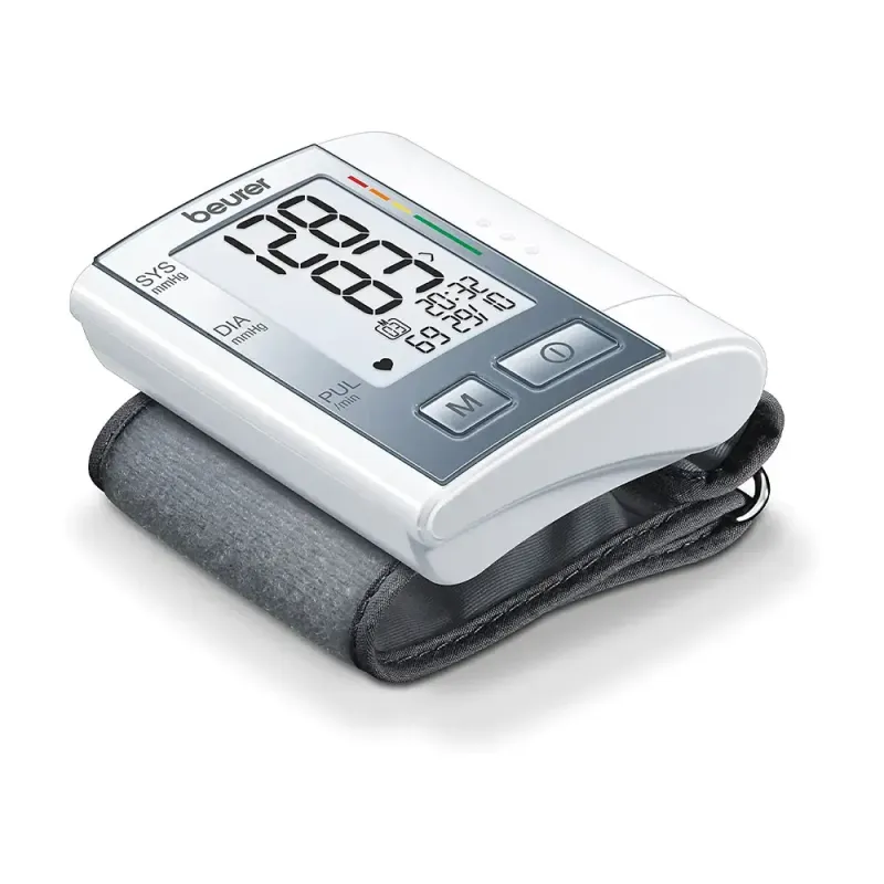 Tensiomètre de poignet Beurer BC 40 pour une mesure rapide et facile de la tension artérielle. Il est doté d'un indicateur de risque de l'OMS, d'une détection d'arythmie et d'une mémoire de 60 mesures.