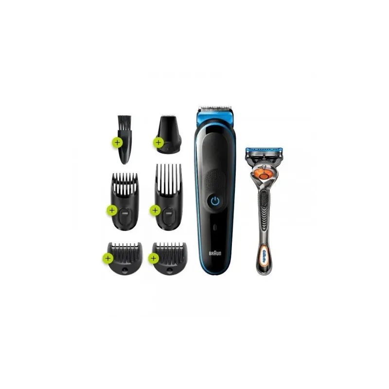 Le Braun Multi Grooming Kit MGK5245 est un ensemble de toilettage 7-en-1 complet, conçu pour la barbe, le visage et la coupe de cheveux. Ce modèle se distingue de la Série 3 par l'intégration de la batterie Li-Ion et la technologie AutoSense, assurant une performance de coupe supérieure, y compris sur les barbes denses. L'appareil est fourni avec cinq accessoires (incluant quatre sabots et une tête de tondeuse nez/oreilles) et un rasoir Gillette Fusion 5 ProGlide, vous permettant de gérer 7 tâches de toilettage différentes avec une précision et un confort optimaux.