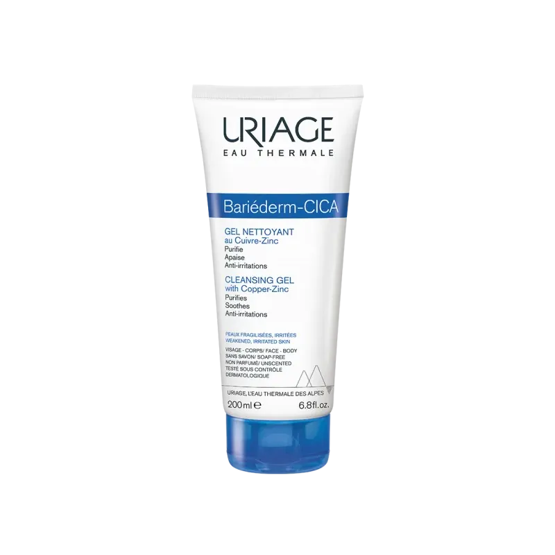 un gel moussant ultra-doux pour les peaux fragiles, irritées et fragilisées. Sa formule sans savon au Cuivre-Zinc et à l'Eau Thermale d'Uriage nettoie, purifie et apaise les inconforts (rougeurs, irritations), favorisant la réparation cutanée sur le visage, le corps et le cuir chevelu, pour toute la famille.