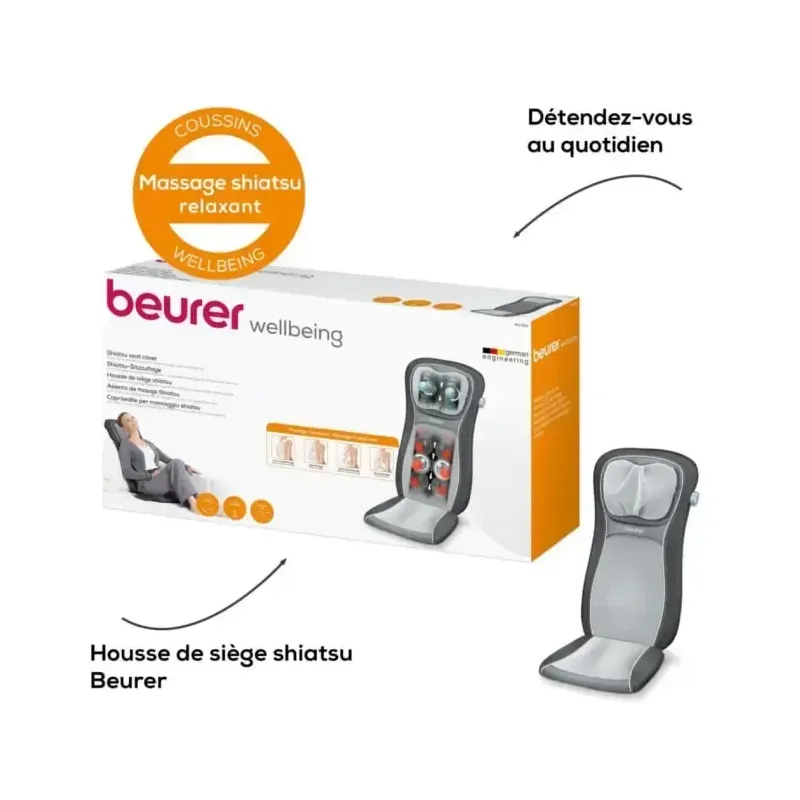 Le siège de massage Shiatsu Beurer MG 260 offre un massage Shiatsu pour le dos et le cou avec 4 têtes rotatives et une fonction de chaleur. Il dispose de différents programmes et d'un massage par vibration, parfait pour la relaxation à domicile.