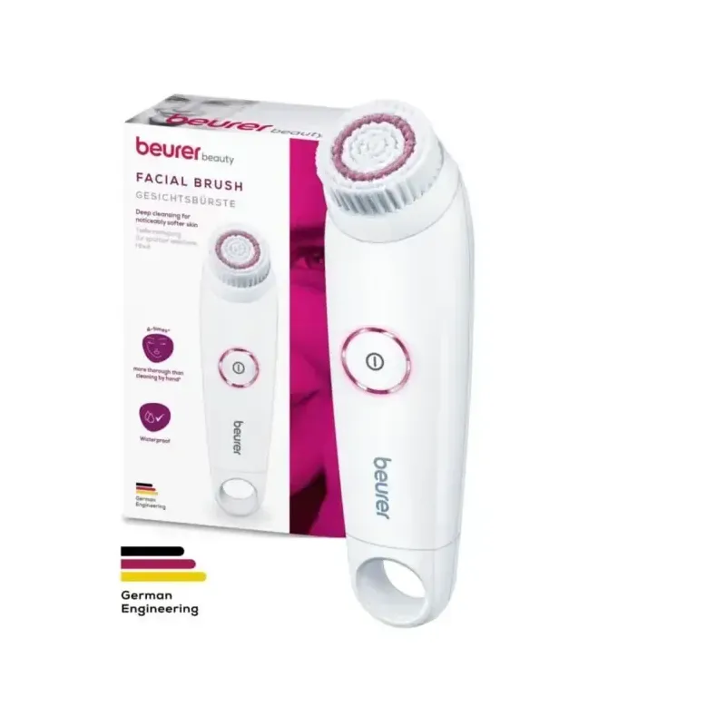 Brosse cosmétique visage Beurer FC 45 pour un nettoyage en profondeur grâce à sa technologie rotative. Elle est résistante à l'eau (IPX7), offre 2 niveaux de vitesse et fonctionne sur piles pour une utilisation pratique.