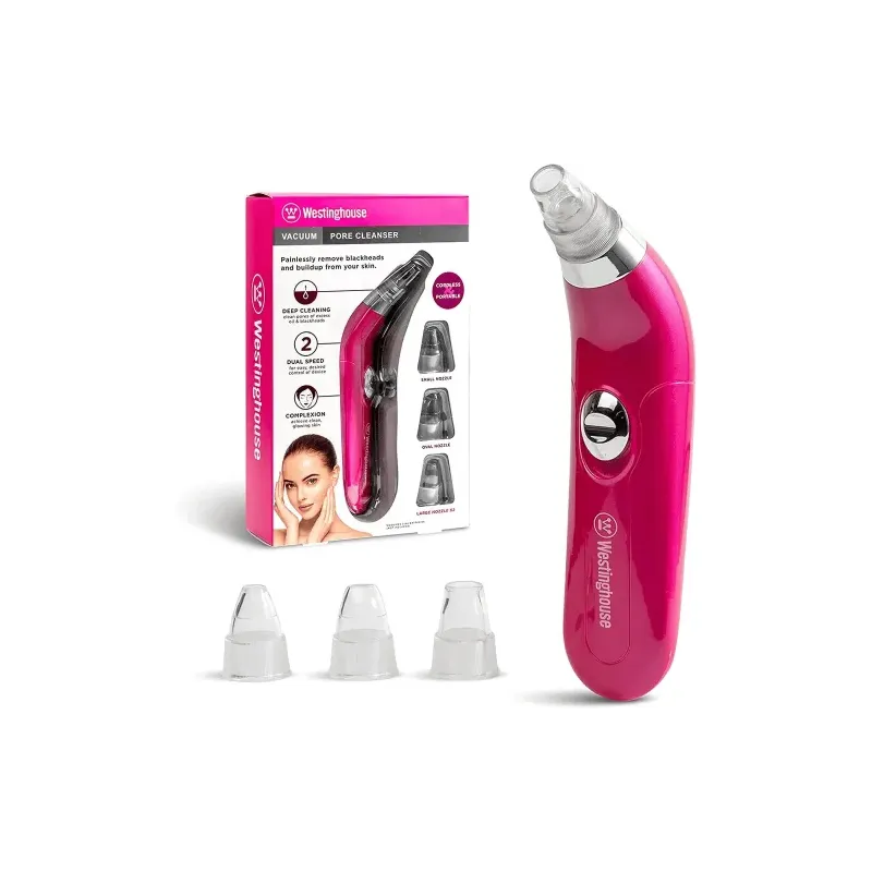 Le Nettoyeur de Pores WESTINGHOUSE est un appareil de soin du visage compact et portable qui utilise la technologie d'aspiration pour nettoyer les pores en profondeur. Il est spécialement conçu pour débarrasser la peau de l'excès de sébum, des impuretés et des points noirs, contribuant à une apparence plus nette et saine. Cet appareil propose une double vitesse d'aspiration pour permettre à l'utilisateur de contrôler la force selon la zone et la sensibilité de sa peau. Il est livré avec quatre buses interchangeables pour s'adapter aux différentes zones du visage. Son alimentation par piles le rend idéal pour les déplacements et les retouches rapides.