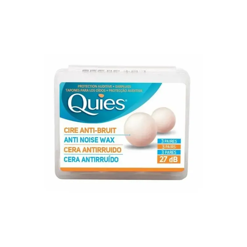 La Quies Cire Naturelle Boîte de 6 contient 6 paires de protections auditives en cire, offrant une atténuation sonore d'environ 27 dB. Leur composition naturelle et leur malléabilité assurent un ajustement parfait et un confort optimal pour bloquer efficacement les bruits. Idéales pour dormir, étudier, voyager ou se détendre, elles sont discrètes, hypoallergéniques et garantissent une protection auditive naturelle et adaptable.