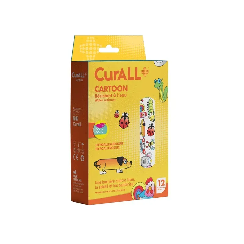 Les Pansements Cartoon Aqua Resist CURALL sont un kit de 12 pansements spécialement conçus pour les enfants. Ils allient l'efficacité d'une protection de plaie durable avec un aspect ludique grâce à des motifs de dessins animés (ou personnages thématiques). Leur caractéristique principale, "Aqua Resist", signifie qu'ils sont dotés d'un support en film plastique ou vinyle résistant à l'eau, ce qui les rend parfaits pour les jeux à l'eau, la piscine ou la douche. Ils protègent la plaie des bactéries et de l'humidité tout en apportant une note réconfortante aux petits blessés.
