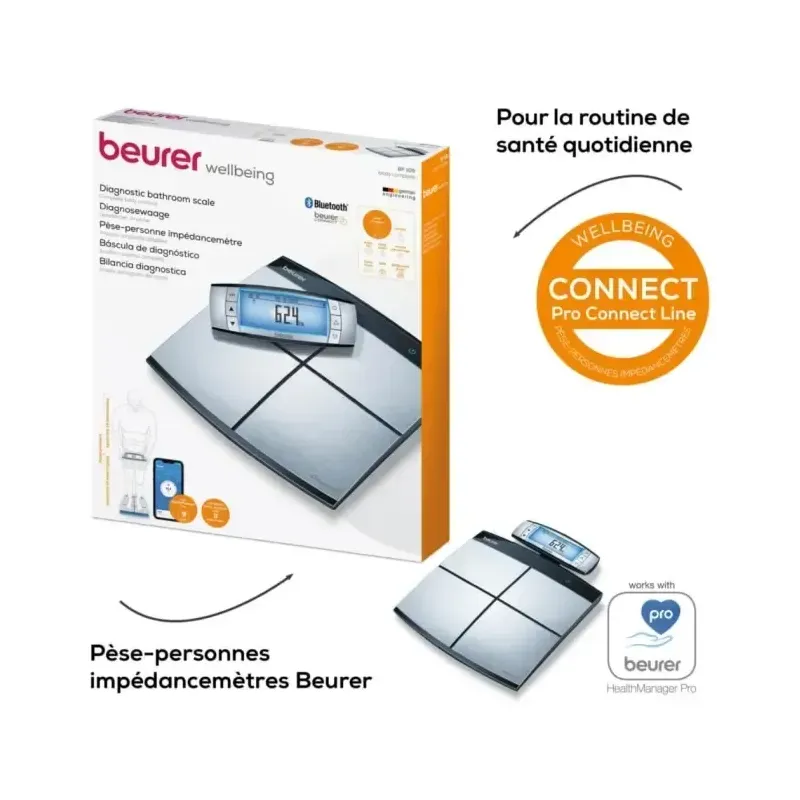 Le pèse-personne impédancemètre en verre Beurer BF 105 est un appareil de diagnostic professionnel conçu pour une analyse corporelle complète et précise. Il ne se contente pas de mesurer votre poids, mais il utilise la technologie de la bio-impédance pour fournir une analyse détaillée du corps entier ainsi qu'une analyse segmentaire (bras, jambes, torse). Les mesures incluent le poids, le taux de graisse corporelle, le taux d'eau, la masse musculaire, la masse osseuse, ainsi que l'IMC (Indice de Masse Corporelle) et le métabolisme de base et actif (BMR/AMR). Ce qui rend ce modèle unique est son écran amovible XXL, qui peut être tenu à la main pour une lisibilité parfaite des résultats. La plateforme en verre de sécurité est robuste et élégante, avec une capacité de poids élevée. Le Beurer BF 105 est un outil de suivi de santé complet pour toute la famille, avec une mémoire pour 10 utilisateurs.