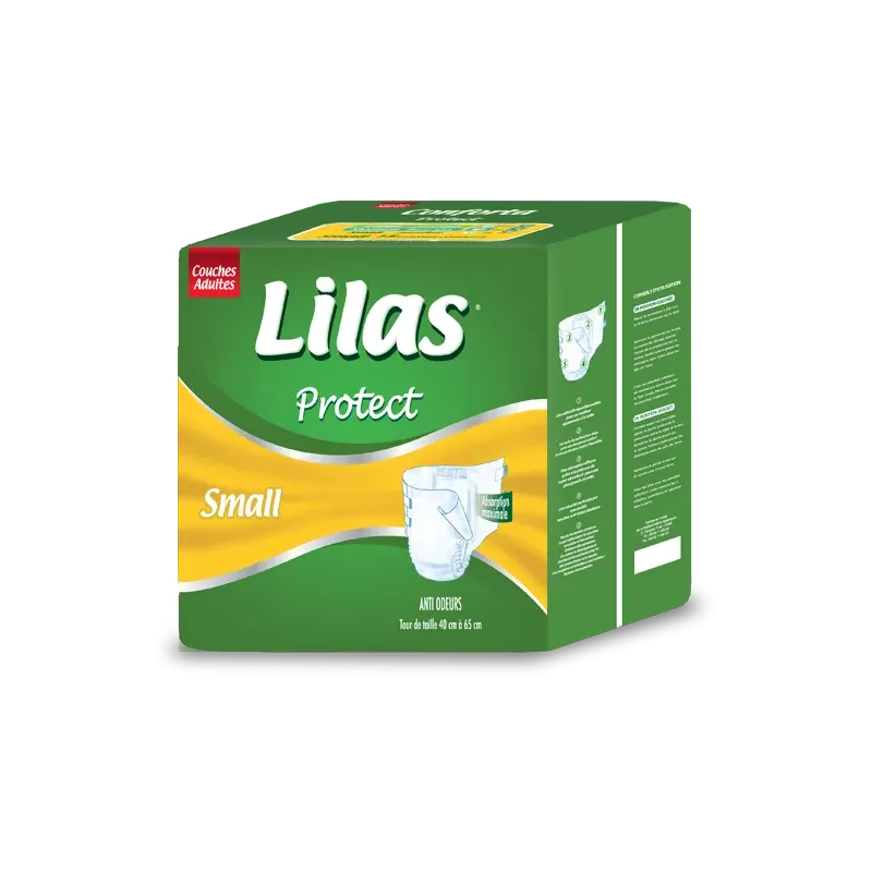 Les Couches Adultes LILAS CONFORT PROTECT sont des changes complets (ou "couches avec attaches adhésives") conçus pour la gestion de l'incontinence forte à sévère. La Taille S (Small) est destinée aux utilisateurs de petite stature ou ayant un tour de taille plus fin. Ce format garantit une très haute capacité d'absorption, un ajustement sécurisé et un grand confort, et est particulièrement adapté aux personnes alités ou nécessitant l'aide d'un aidant pour le change.