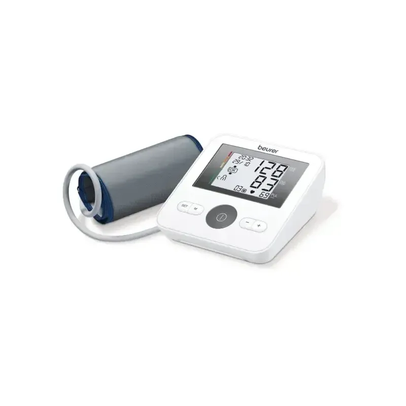 Tensiomètre de bras Beurer BM 27, pour une mesure précise de la tension artérielle et du pouls. Il dispose d'un indicateur de risque OMS, d'une détection d'arythmie et d'une mémoire pour 4 utilisateurs, ce qui le rend idéal pour un usage familial.