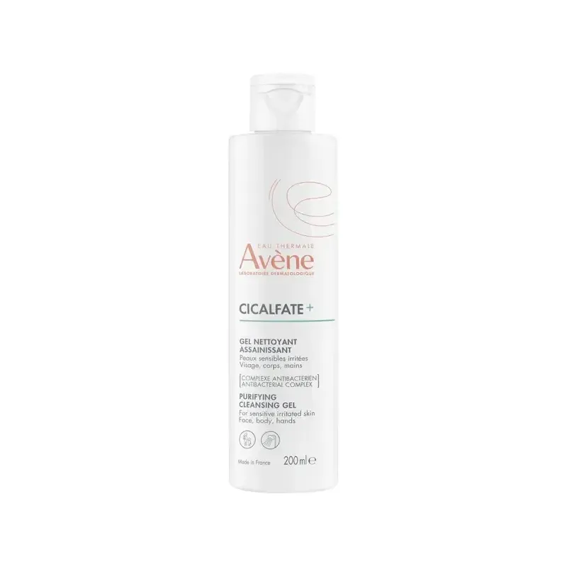 Le Gel Nettoyant Assainissant Avène Cicalfate+ 200ml nettoie en douceur et purifie les peaux sensibles, irritées et fragilisées de toute la famille (visage, corps, zones intimes, cuir chevelu). Grâce au [C+-Restore]™ et aux sulfates de cuivre et zinc, il favorise la réparation et assainit la peau, tandis que l'Eau Thermale d'Avène apaise immédiatement. Sans parfum et haute tolérance, il laisse la peau propre, douce et confortable.