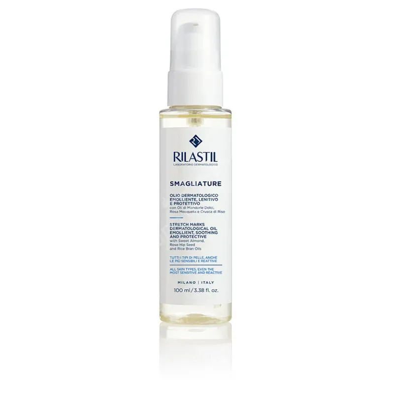 L'Huile Dermatologique Rilastil Smagliature 100ml est un soin corporel spécialement formulé pour prévenir et atténuer l'apparition des vergetures, tout en améliorant l'élasticité et la souplesse de la peau. Sa formule riche en huiles végétales précieuses la rend particulièrement adaptée aux peaux soumises à des changements importants (grossesse, adolescence, variations de poids) ou simplement en quête d'une hydratation intense et d'une meilleure élasticité.