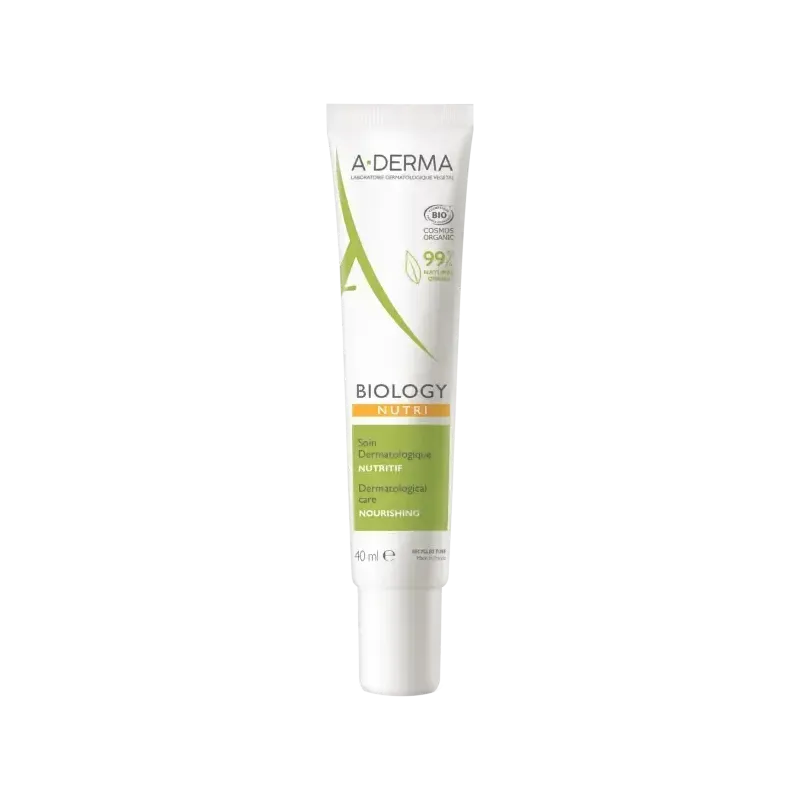 Le A-Derma Biology Nutri Soin Nutritif 40ml est un soin dermatologique conçu pour répondre aux besoins des peaux très sèches et fragiles du visage. Sa formule riche et nourrissante est certifiée bio, offrant une solution efficace pour apaiser les sensations de tiraillement, de sécheresse et de rugosité. Ce soin apporte une hydratation intense et durable tout en restaurant le film hydrolipidique de la peau.